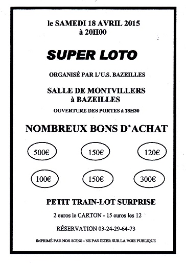 Ce Super loto est organisé par l’Union Sportive Bazeillaise (U.S.B.)